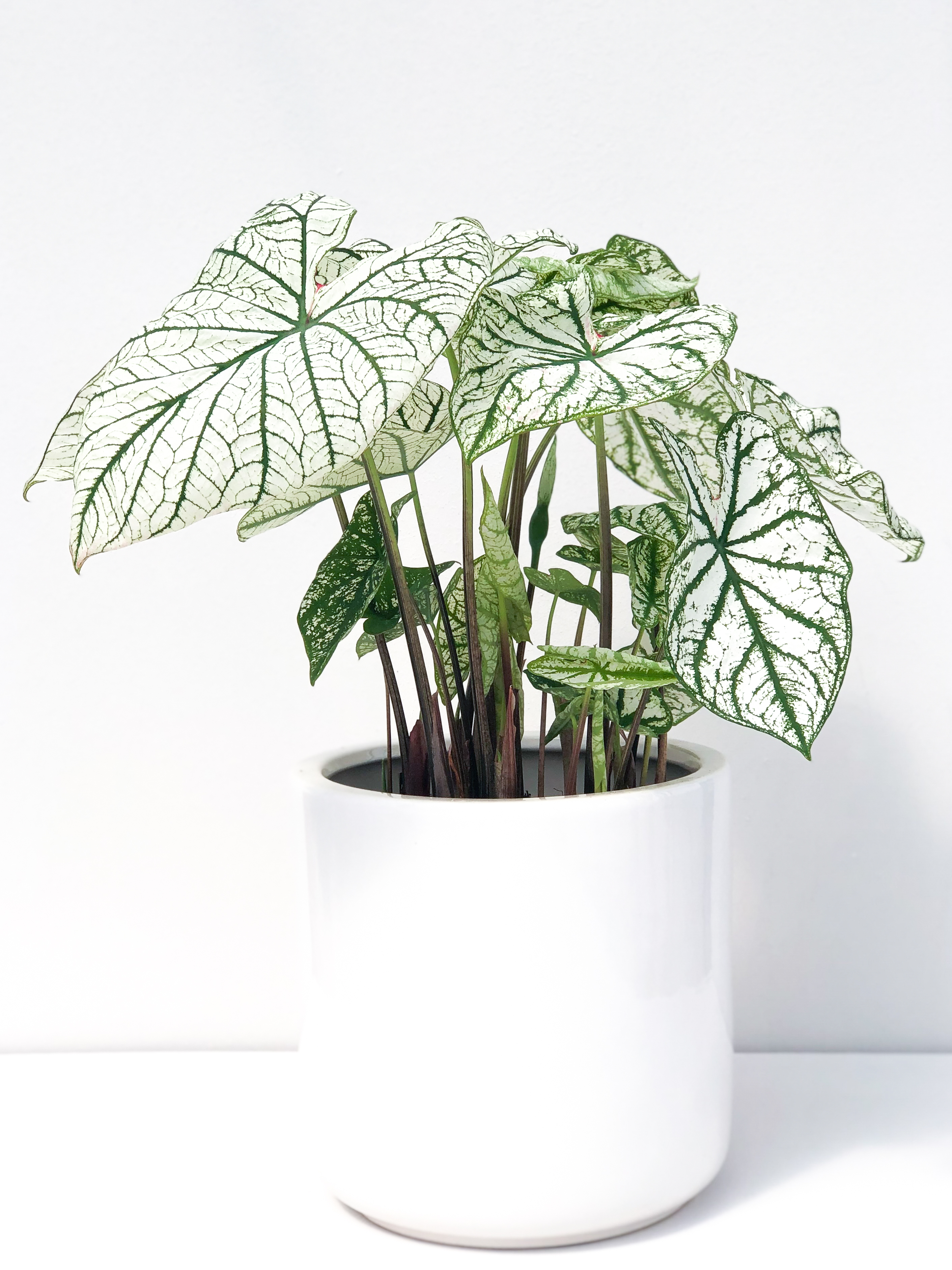 Il Caladium, appartenente alla famiglia delle Araceae, è una pianta originaria delle foreste tropicali del Sudamerica, in particolare, molto diffusa in Brasile. Le sue grandi foglie screziate di colori intensi, la rendono una pianta unica nel suo genere e molto apprezzata per le sue doti decorative. Proprio per questo, nel linguaggio dei fiori, il suo significato è incostanza, incoerenza, a simboleggiare la grande varietà di sfumature che caratterizza le sue foglie. Le foglie del Caladium possono raggiungere dimensioni ragguardevoli, tanto che gli indigeni della Guyana sono soliti servirsi delle foglie di queste piante come piatti e vassoi.