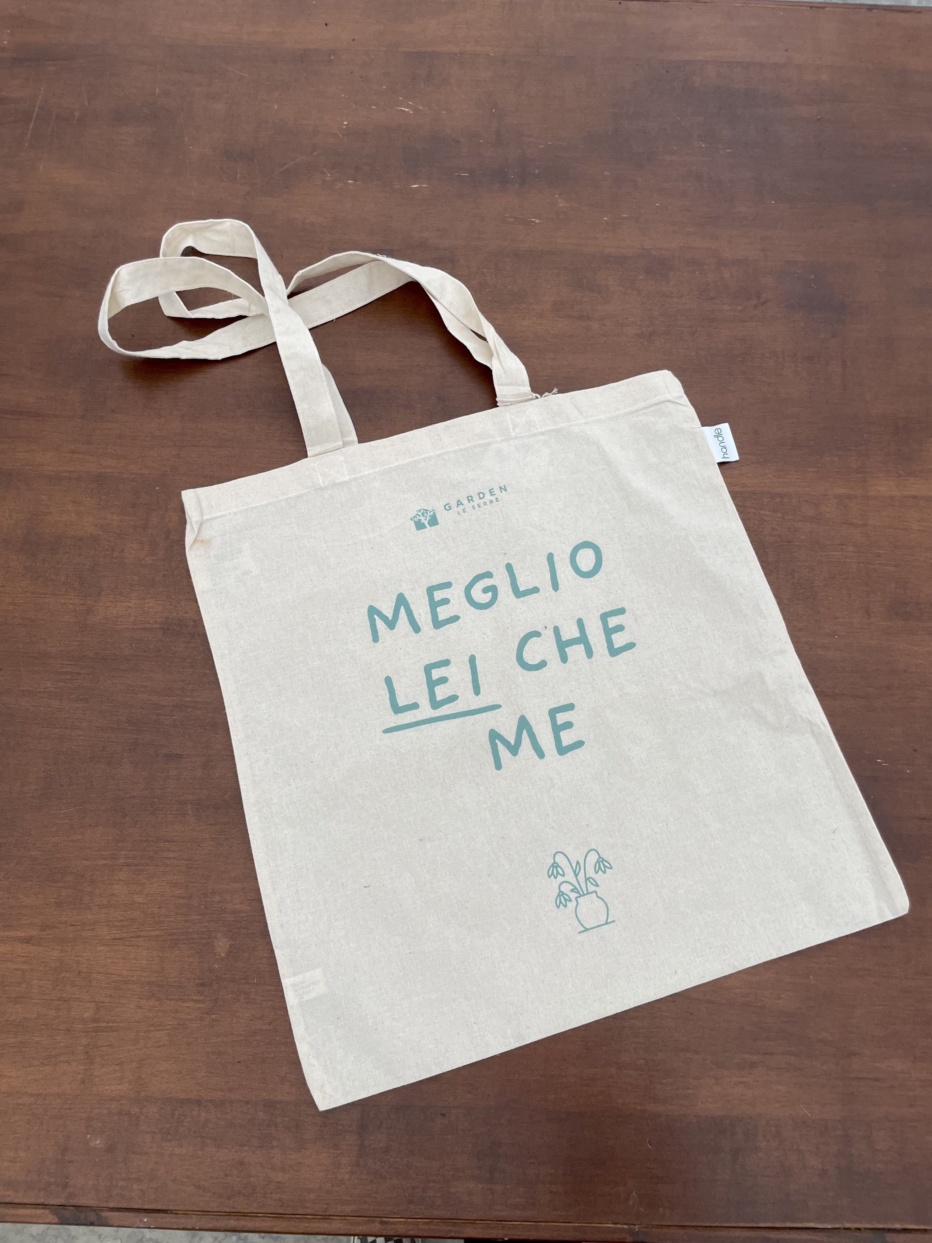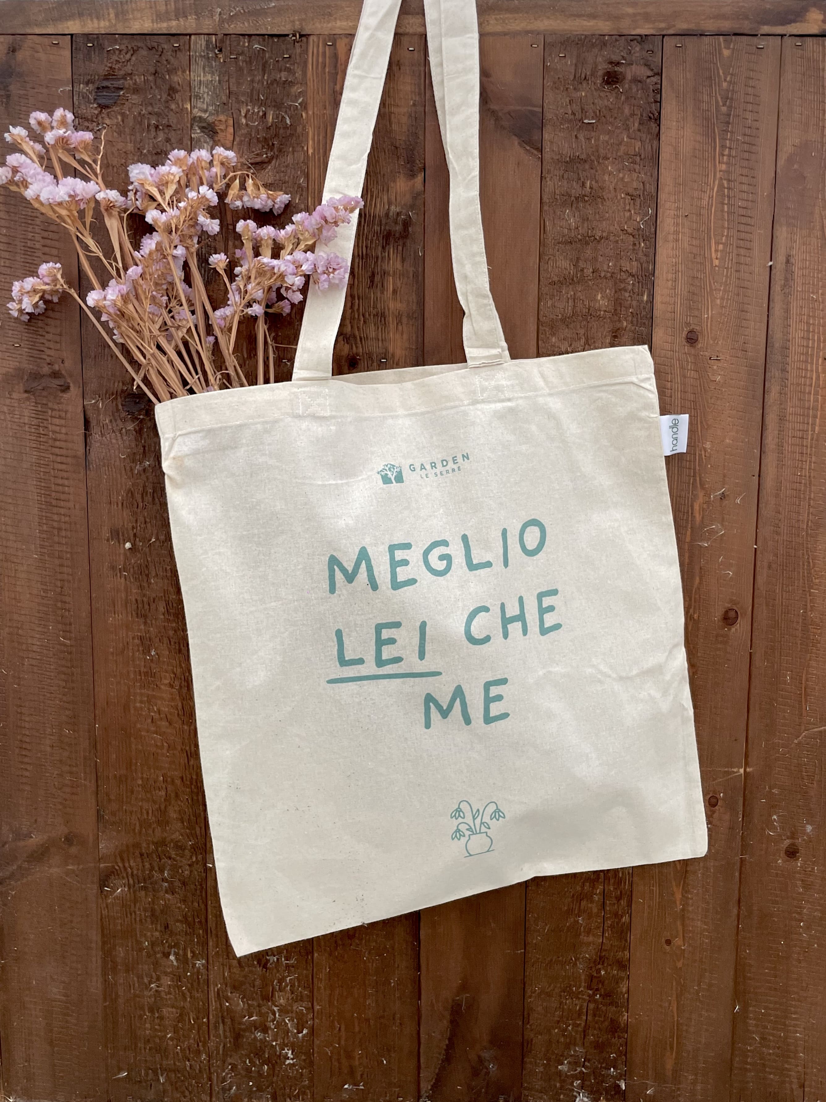 Shopper in cotone riciclato con stampe resistenti ai lavaggi.